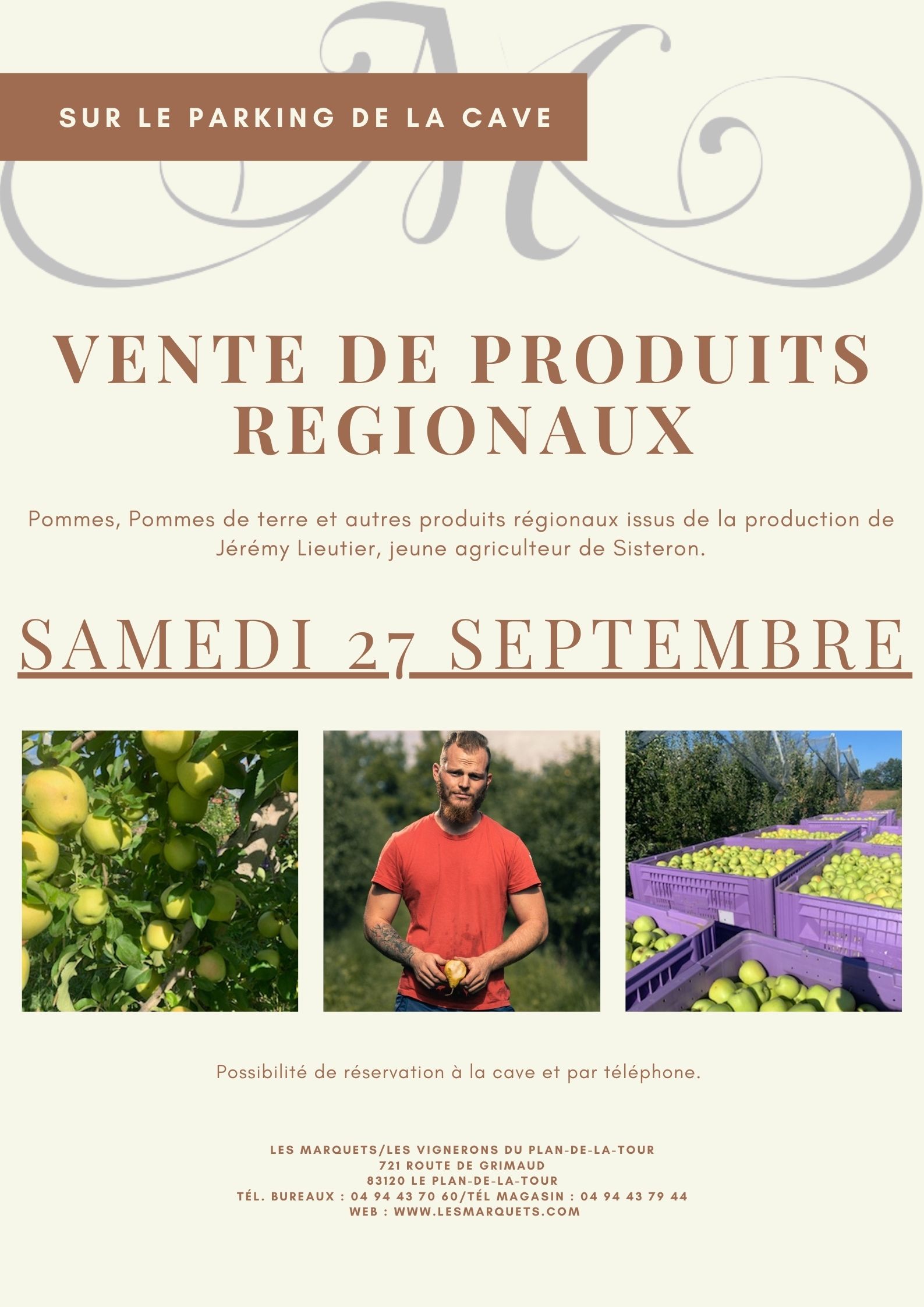 Le samedi 27 septembre 2025, Jerémy et Margot, producteurs de fruits et légumes mais aussi de produits régionaux, seront présents chez Les Marquets. Vous trouverez sur leur stand, des pommes, jus de fruits, pommes de terre, courges, lentilles mais aussi bien d'autre produits issus de leur production. Pensez à réserver, soit par téléphone ou